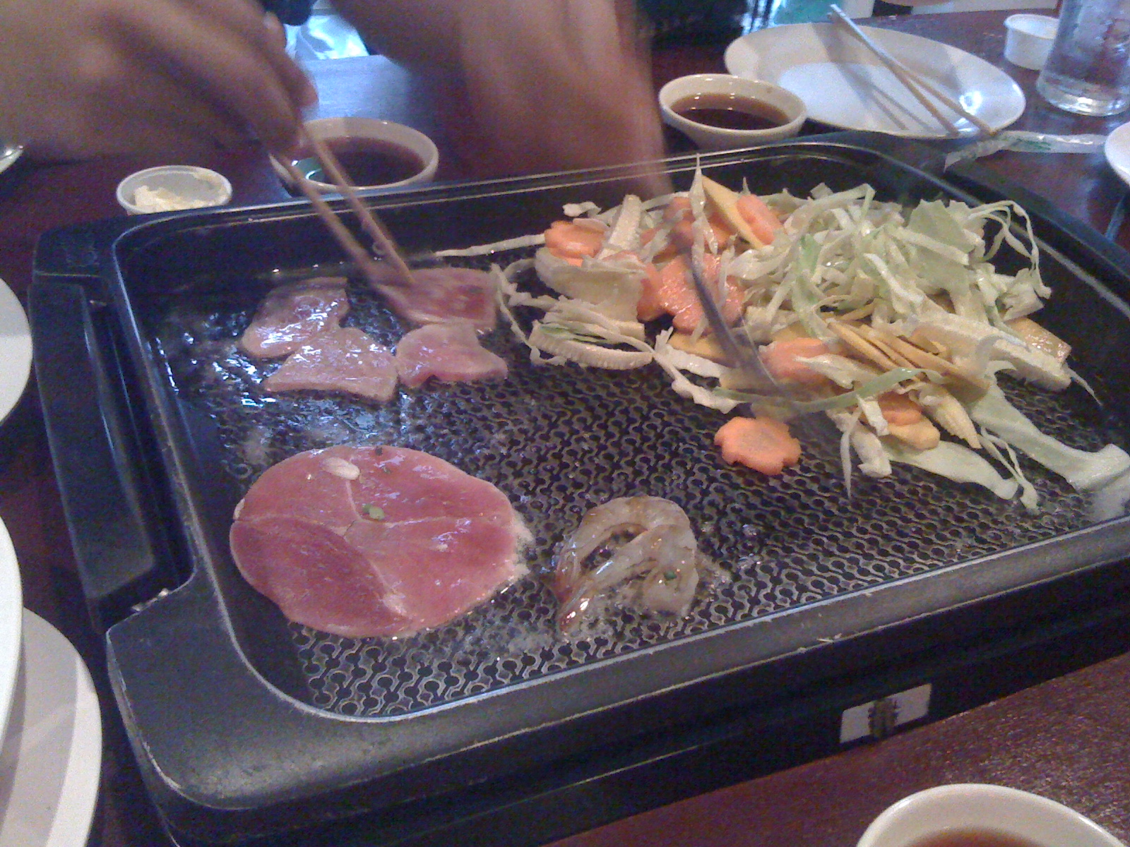 ชื่อร้านบอกว่าเตาย่าง จริงๆ ใช้เตาไฟฟ้าครับ เพื่อสุขภาพอนามัย จะได้ไม่ต้องทานไหม้ๆ ไงครับ เป็นจุดเด่นของร้านนี้เลย แต่เอ๊ะ มันก็ไ่ม่หอมถ่านไม้น่ะสิ ไม่เป็นไรครับ เขาใช้เนยแทนไปครับ เนยดีเลยล่ะ หอมฉุยๆ และเวลา Grill เนื้อก็ไม่ติดกระทะด้วยครับ เนื้อที่นี่ดีเลยล่ะ อาจจะเป็นรองโคขุนโพนยางคำ แต่ความบางของเนื้อ รส มันที่แทรก อยู่ ไม่แพ้ครับ ยิ่งเป็นบุฟเฟ่ต์ด้วยแล้ว คุ้มและกินกันจนลุกไม่ไหวเลยล่ะ นอกจากนี้เขายังมีอย่างอื่นด้วย อย่าง หมู กุ้งที่แกะเปลือกให้แล้ว (ชอบมาก) ตับหมู ปลาหมึก น้ำจิ้มมีสองแบบ คือ แบบญีปุ่น จะคล้ายๆ หมี่เย็น (ผมชอบมาก) แบบไทย (น้ำจิ้มทะเล และ น้ำจิ้มแจ่วข้าวคั่ว) และยังมีเครื่องเคียงอย่าง ข้าว ข้าวผัดกระเทียม น้ำซุป ปิดท้ายด้วยไอติมครับ