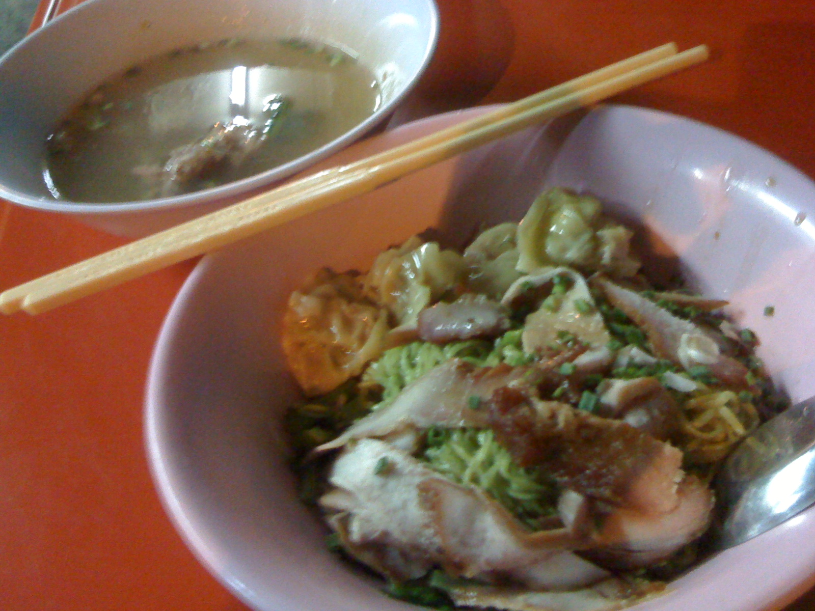 มื้อกลางวันบะหมี่เกี๊ยวปู หมูแดง วงเวียนโอเดียน