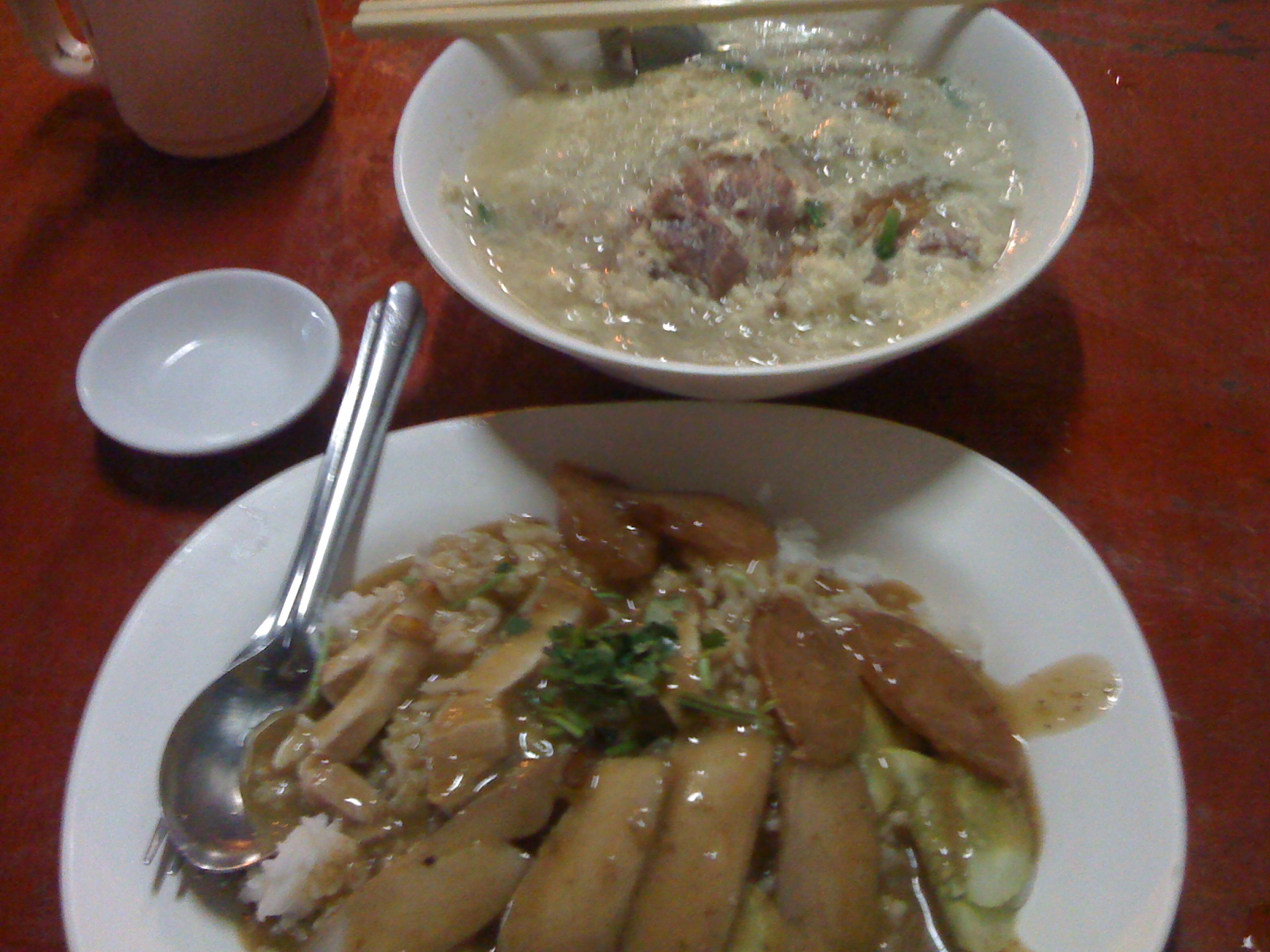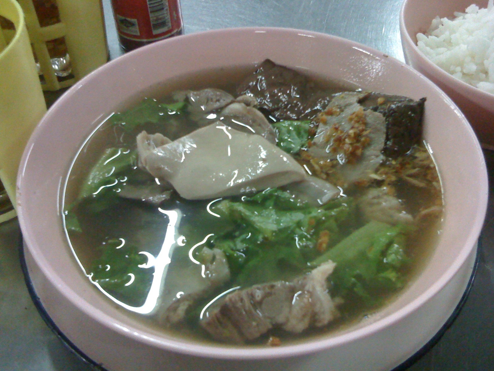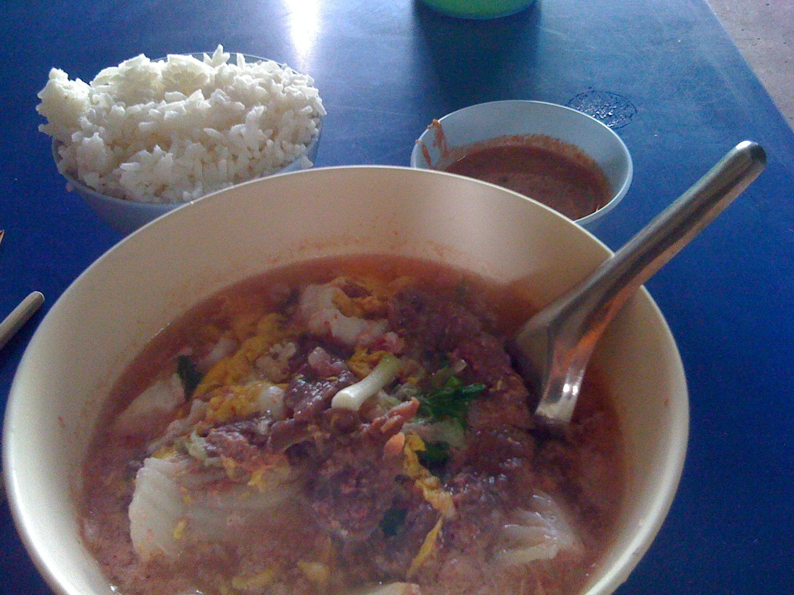 ่ร้านนี้ขายหลายอย่างครับ ที่เด็ดคือ สุกี้ทั้งน้ำทั้งแห้งเลย อร่อยมากๆ รสคนละแบบกับร้่านก่อนๆ ครับ ร้านนี้เขาแยกตัวจากร้านคงอุดม ที่เขาเปิดข้างหน้านั่นแหละ ทะเลาะกัน เลยเปิดกันคนละเวลา ทำเลเดียวกันครับ สุกี้รถกระบะเลยขายตอนเย็นไปถึงเที่ยงคืนโน่นครับ ข้าวหมูแดงเจ้านี้จะเรียกว่า “ข้าวซุปเปอร์” ครับ คล้ายข้าวเฉโปนั่นแล