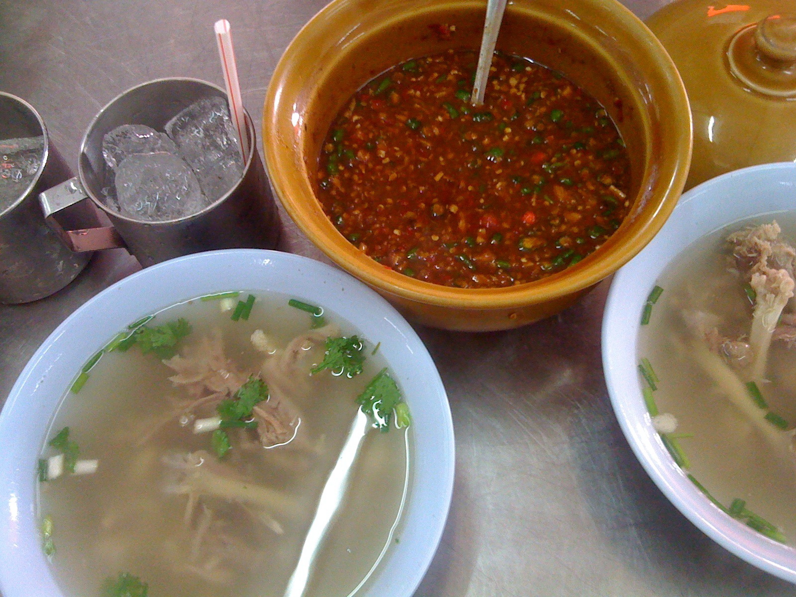 ร้านนี้ทำสุกี้เนื้อโบราณอร่อยมากครับ หมูไก่ก็มี แยกหม้อด้วย ใส่เต้าหู้ยี้แดงจริงๆ มีกลิ่นเต้าหู้โชยมา น้ำจิ้มเผ็ดจัดครับ ใส่น้ำกระเทียมดองมั้ง จำรสได้อ่ะ