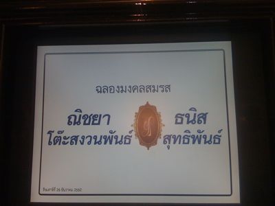 งานนี้เล่นกับ JRP Bigband โดยมี Organize จากทาง คุณต้น จักรพรรดิ์ งานเป๊ะมากครับ แม้ว่าจะเกิดเหตุการณ์ซึ้งสุดยอดเพราะเจ้าบ่าวตั้งแต่ตอนวันหมั้น เจ้าสาวซื้อนาฬิกาให้เป็นของขวัญ ปรากฏว่าเจ้าบ่าวบอก “ไม่มีอะไรจะให้ นอกจาก…” แล้วมือไวโอลินก็เข้ามาเล่น เจ้าบ่าวก็ร้องเพลง……ส่วนงานแต่งเจ้าบ่าวก็บอกความในใจว่าชอบมาตั้งแต่สมัยเรียนแต่ไม่กล้าจีบ จนในที่สุดก็……มาถึงตรงนี้ เจ้าสาวร้องไห้ เลยต้องมีการเติมแป้งครับ