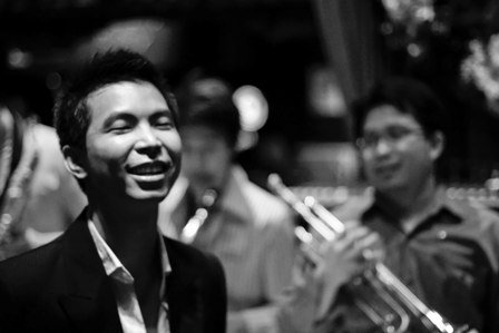 “JRP Little Bigband, formed in 2000 by Nick Lafleur. JRP stands for Jazz – Rock – Pop, we play every wednesday and thursday night from 9:00-11:30pm at Saxophone pub, victory monument. We also play in many event such as Huahin Jazz Festival. Our style is classical bigband combined with modern vocal song such as Michael Buble, Jamie Cullum sung by Mr.Atthapol Chaisiri (aka. Tee)”