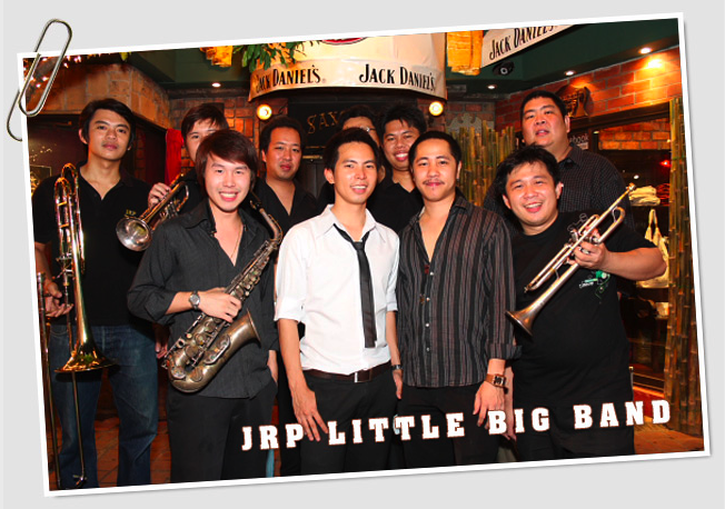 “วงดนตรี JRP Little Bigband ด้วยเอกลักษณ์ที่เอาเพลงในสไตล์บิ๊กแบนด์ ซึ่งประกอบด้วยเครื่องดนตรี 17 ชิ้น มาเล่นในขนาดวง 10 ชิ้น ก่อตั้งโดยอ.นิค ลาเฟลอร์ ในปี 2000 JRP มาจาก Jazz – Rock – Pop และเล่นคำกับวงดนตรีชื่อดัง GRP ปัจจุบันมีงานเล่นประจำทุกวันพุธ-พฤหัส 9:00-11:30 ที่ร้านแซกโซโฟนผับ อนุสาวรีย์ชัยสมรภูมิ นอกจากนี้ วง JRP ยังได้มีโอกาสเล่นในงานหัวหินแจ๊สเฟสติวัล หลายครั้ง และออกรายการโทรทัศน์ต่างๆ รวมถึงงานอีเวนต์ต่างๆ เพลงที่เล่นจะเน้น Classical Bigband อย่าง In the Mood ผสมผสานกับเพลงร้องสนุกๆ ในปัจจุบัน อย่างเช่น Michael Buble, Jamie Cullum โดยมีนักร้องเสียงดีอย่างน้องตี๋ อรรถพล ชัยศิริ เป็นผู้ขับกล่อม”