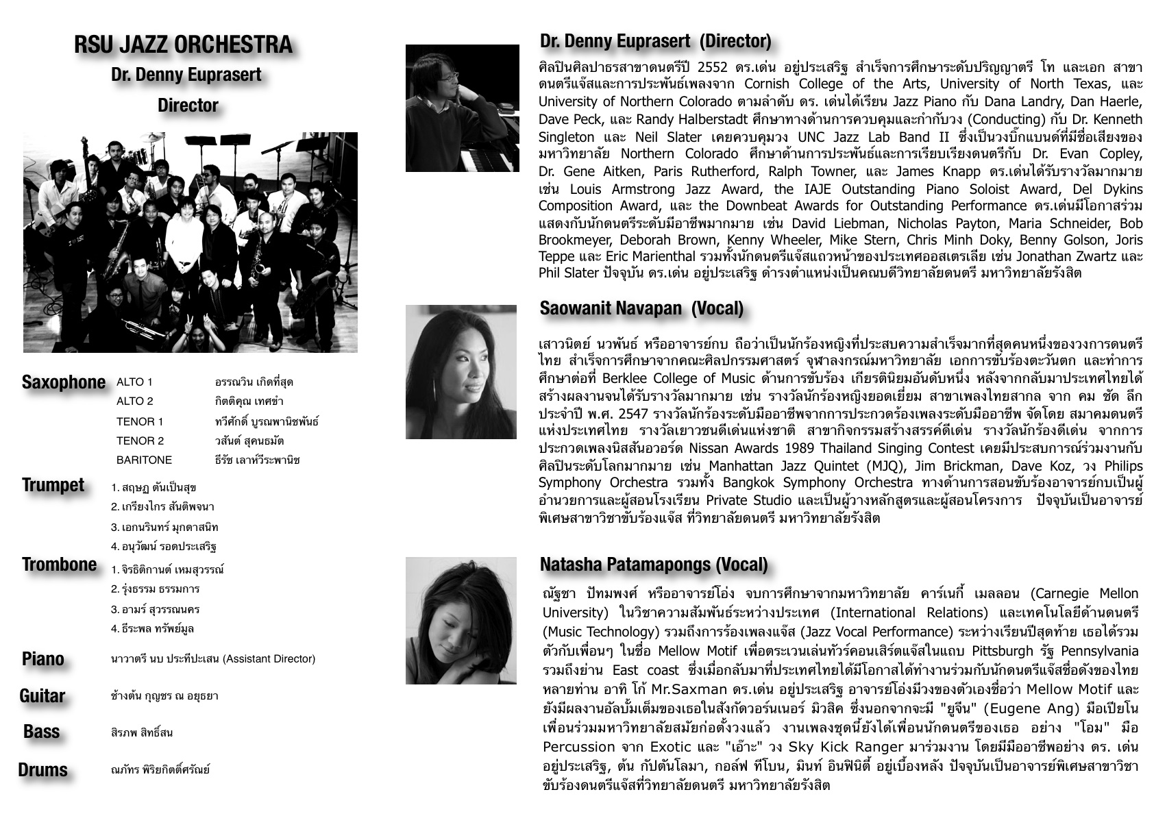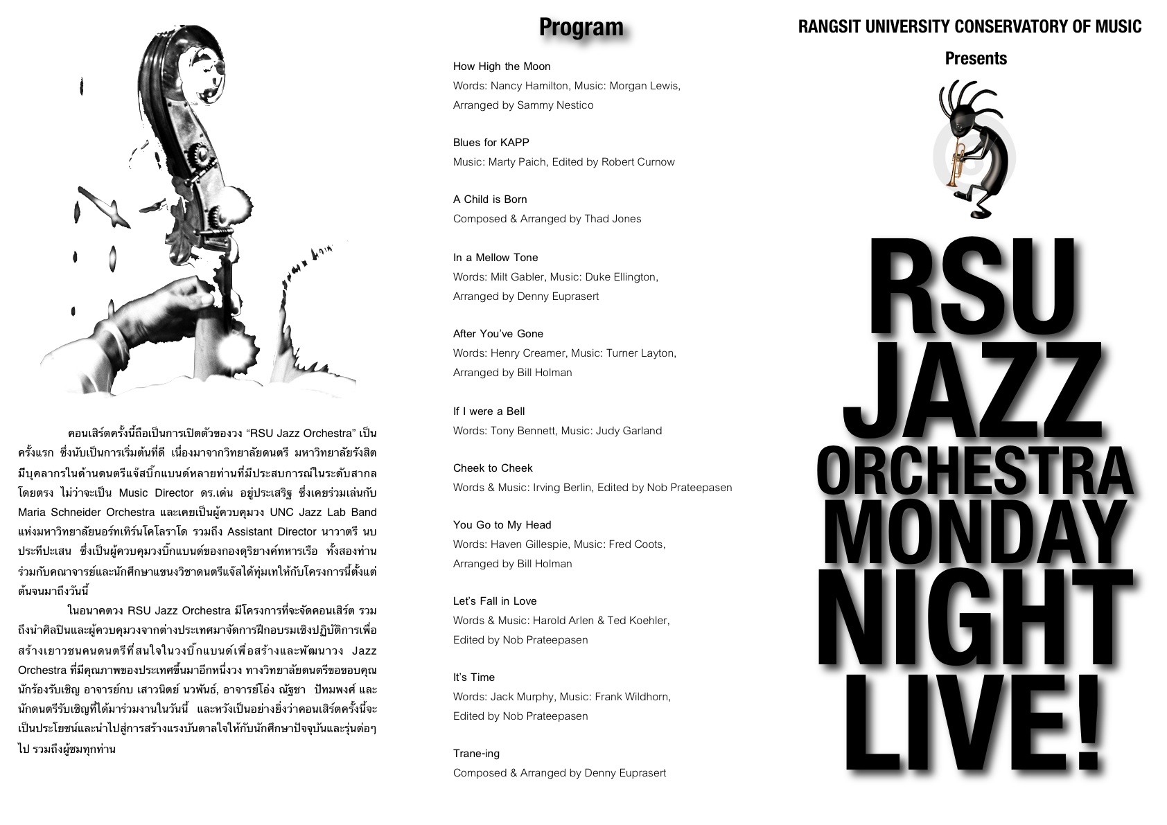 สูจิบัตร วงดนตรี แจ๊ส ออเครสต้า มหาวิทยาลัยรังสิต