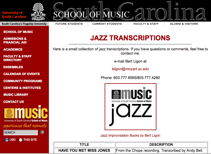 If compare to other site, this site provide more useful because it’s exercise. Help student to know how to get this solo by listening (mp3), practice (exercise), solo and analyze (transcription) and band playing (arrangement).