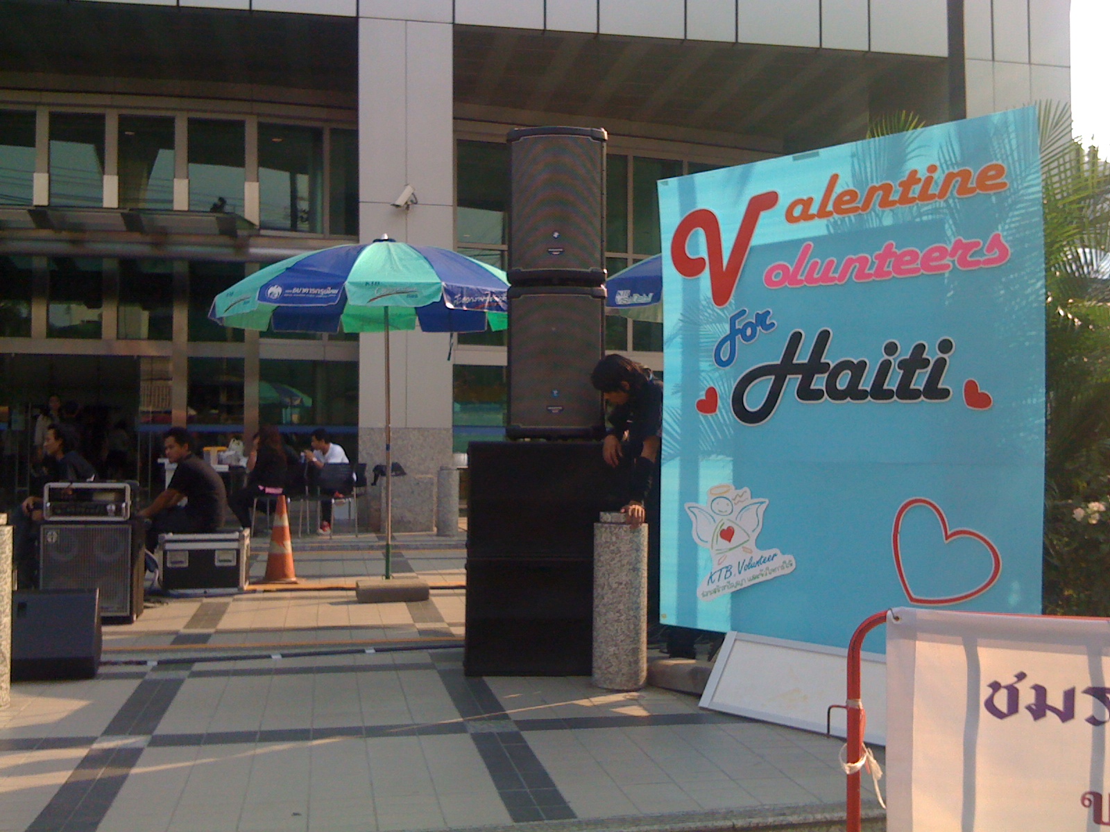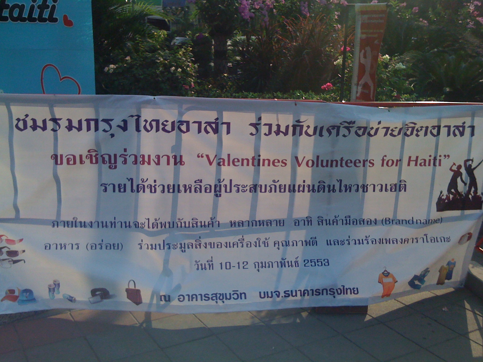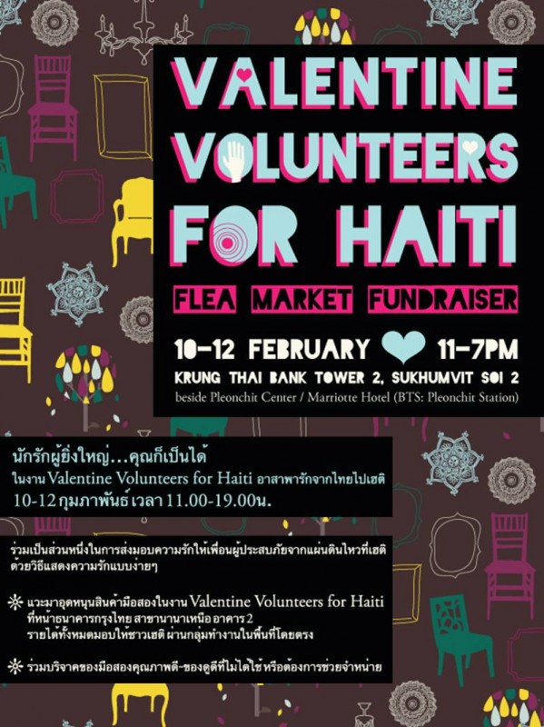 * แวะมาอุดหนุนสินค้ามือสอง ร้องเพลง ฟังดนตรีในงาน Valentine’s Volunteers for Haiti ที่หน้าธนาคารกรุงไทย สาขานานาเหนือ อาคาร 2