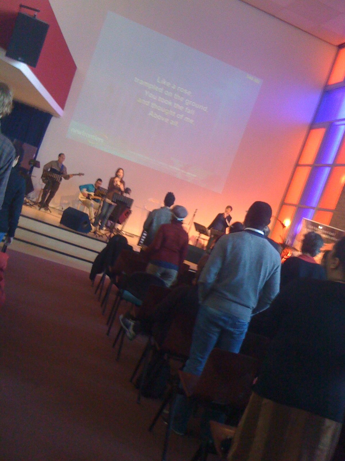 วันนี้ช่วง่ายคนไม่ค่อยเยอะครับ เลยได้เจอทุกคน หลังนมัสการ ก็คุยสนุกสนาน สนิทสนมสไตล์คริสเตียน ที่นี่มีทั้งดัตซ์ คนจีน คนแอฟริกัน และมีผมเป็นคนไทยคนเดียว เจอเพื่อนที่วิทยาลัยด้วย มีบางส่วนมานมัสการที่นี่ครับ แล้วก็มีกลุ่มย่อย หรือ Cell Group ในวันพุธและพฤหัส ไว้เดี๋ยวผมไปจอยเขาแล้วจะมาเล่าให้ฟังครับ
