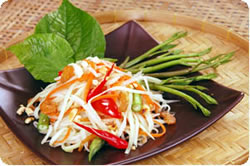 Start with Somtum for appetize then rice with 2 of dish that we can share “Tomyum”, “Larb Kai”, “Yum Nur”, “Todmanpla” etc.