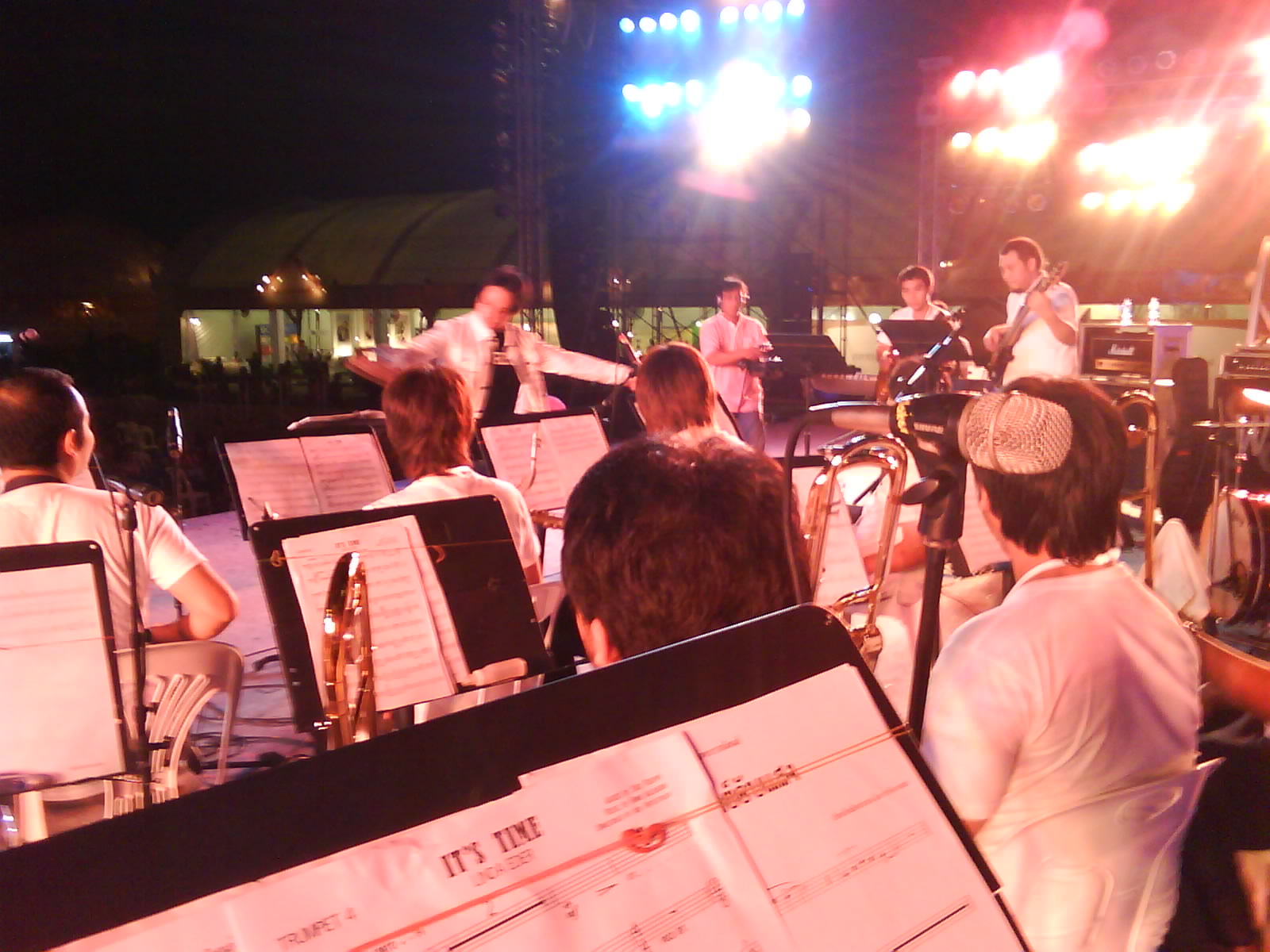 สำหรับงานนี้ มีข้อที่น่าติเพื่อก่ออยู่ประเด็นหนึ่งครับ แม้ว่าผมจะเป็นเพียงฟันเฟืองตัวเล็กๆ ตัวหนึ่งของงานนี้ และก็ทราบดีถึงความตั้งใจที่จะจัดงานนี้ให้ออกมาดี ให้สมกับ #weloveking ที่ทุกๆ คนตั้งใจไว้ แต่สำหรับผลลัพธ์ที่ออกมาทำให้รู้สึกว่า ถ้ามีการประสานงานที่ดี เราจะได้ผลงานที่ดีสำหรับทุกๆ คนครับ ส่วนที่ว่านี้ คือ เรื่องของเสียงครับ เนื่องจากบริเวณ ลานพระบรมรูปทรงม้า นั้น เป็นพื้นที่เปิด และมีซุ้มต่างๆ มากมาย และทุกซุ้ม ก็จะมีลำโพงเปิดแข่งกันอยู่ ตามกำลังงบประมาณที่มี ทำให้เสียงดังกวนกัน แม้แต่ เวทีใหญ่เอง ตัวลำโพงเวทีใหญ่ก็สู้ไม่ได้ครับ เพราะช่วงที่ทางวงเล่นสดอยู่นั้น อีกเวทีหนึ่งใช้เทปเปิดเพลงแดนซ์ ซึ่งผ่านการ Compress มาแล้ว ทำให้เสียงที่ออกมามีกำลังที่เต็มอยู่ตลอดเวลา ในขณะที่เสียงจาก Live Band นั้นมี Dynamic ที่มากกว่า บางช่วงเบา บางช่วงดัง ทำให้เสียงของเพลงแดนซ์ กลบ บทเพลงพระราชนิพนธ์ ที่ทางวง RSU Jazz Orchestra ตั้งใจเล่นไปอย่างน่าเสียดาย ถ้าผมอัพคลิปเสร็จ อยากรบกวนฟังเพลงแสงเทียน ของ อ.ธนิสร์ ซึ่งผมอัดจากบนเวที จะได้ยินเสียงเพลงแดนซ์ชัดเจนครับ นอกจากรบกวนสมาธินักดนตรี แล้วยังรบกวนผู้ฟังด้วย และถือเป็นการไม่ให้เกียรติกับบทเพลงพระราชนิพนธ์ครับ ซึ่งแน่นอนคงไม่มีใครอยากให้เกิดขึ้น เพราะทุกคนต่างก็ต้องการที่จะให้ซุ้มเวทีของตนเอง มีเสียงที่ดีที่สุด (ในบางครั้งก็ชอบแปลว่าดังที่สุด) แต่ถ้าภาพรวมออกมาไม่ดี ผู้ฟังที่ตั้งใจมาฟังคอนเสิร์ต ฟังไม่รู้เรื่อง ก็ทำให้เสียกันทุกฝ่าย กรณีนี้คงต้องฝากเป็นโจทย์สำหรับผู้จัดในงานต่อๆ ไปครับ